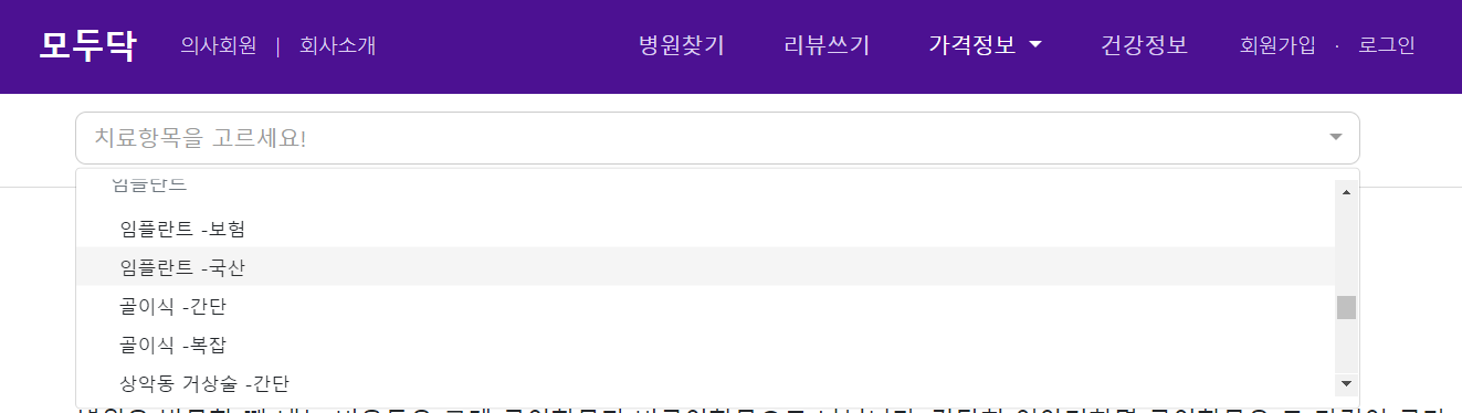 치과 항목에 들어가면 치과 치료이 모두 나오는데 여기서 임플란트 - 국산으로 눌러주겠습니다