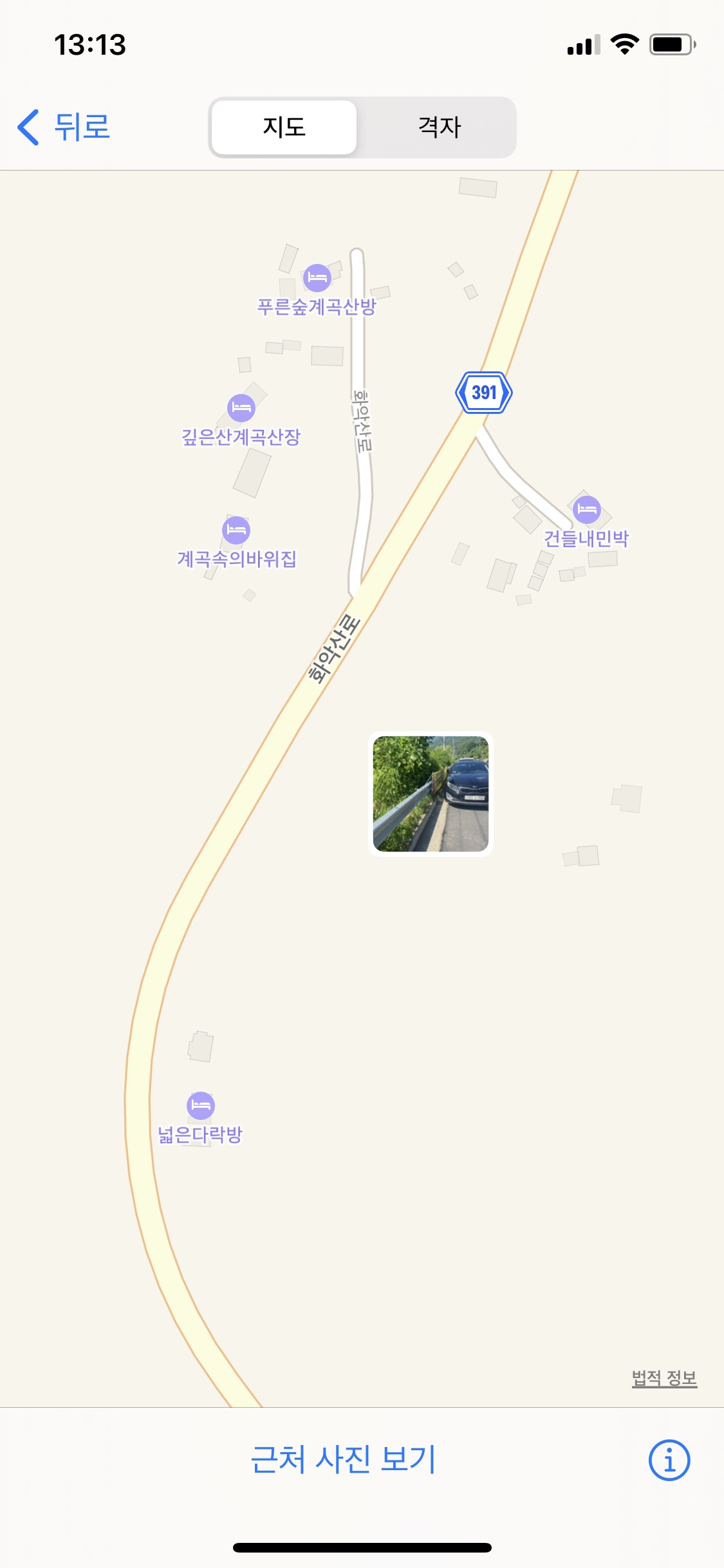 지도로 넓은다락방을 찍고 올라가는 길에 차를 세우시면 되는데요