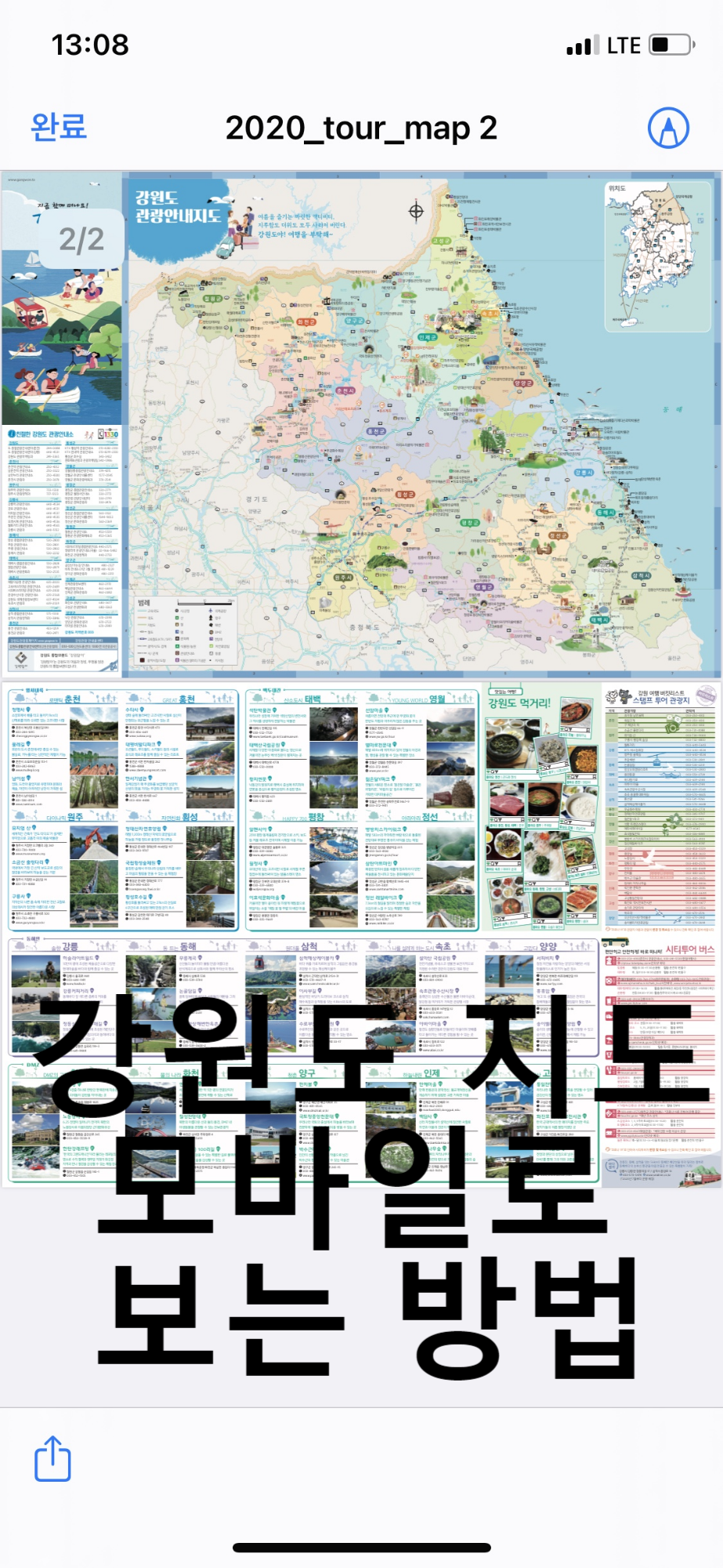강원관광지도를 클릭하면 강원도 대형 맵을 핸드폰으로도 받을 수 있습니다.