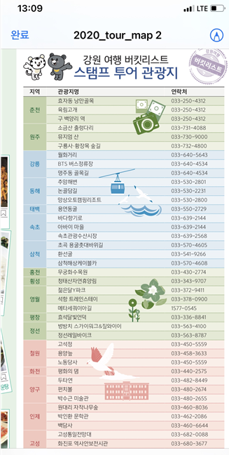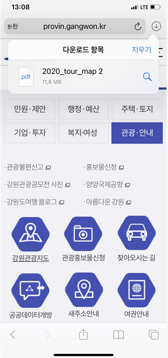 다운로드 항목에 pdf파일이 뜨는데 이걸 눌러주시면 엄청나게 자세한 강원도 맵이 열립니다.