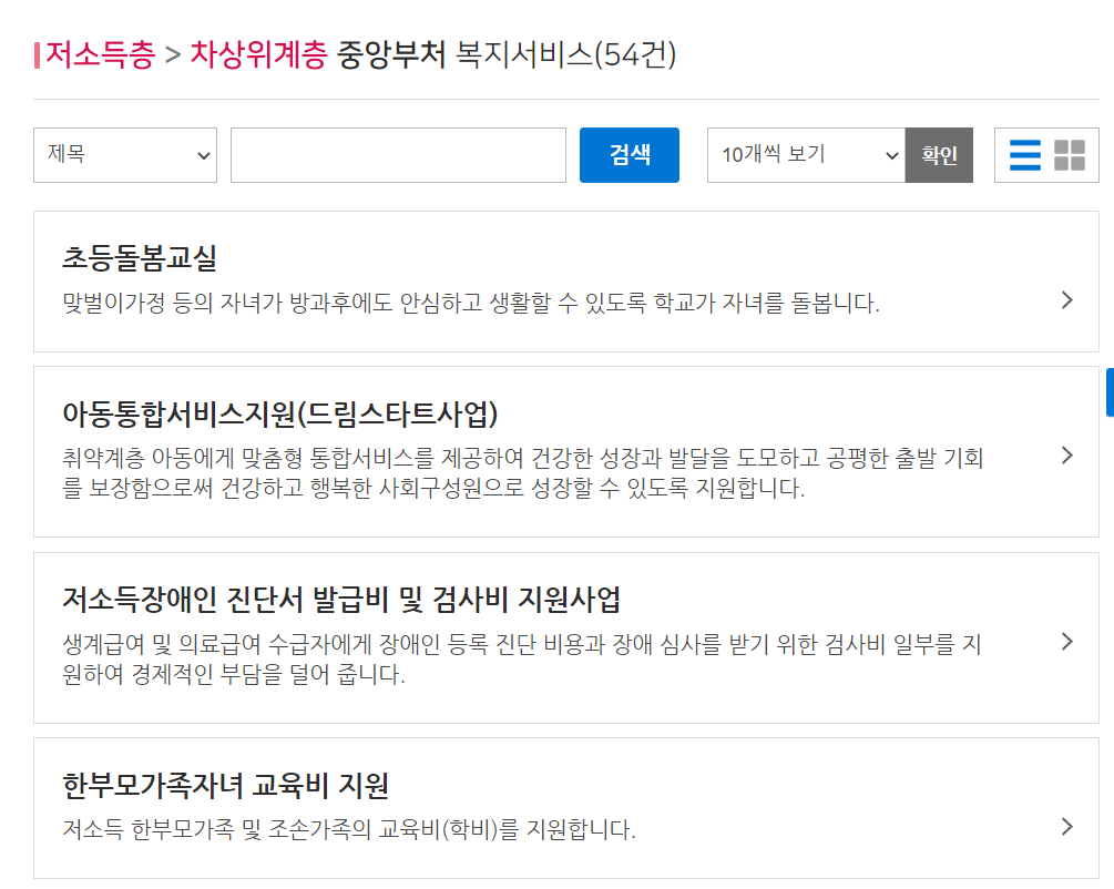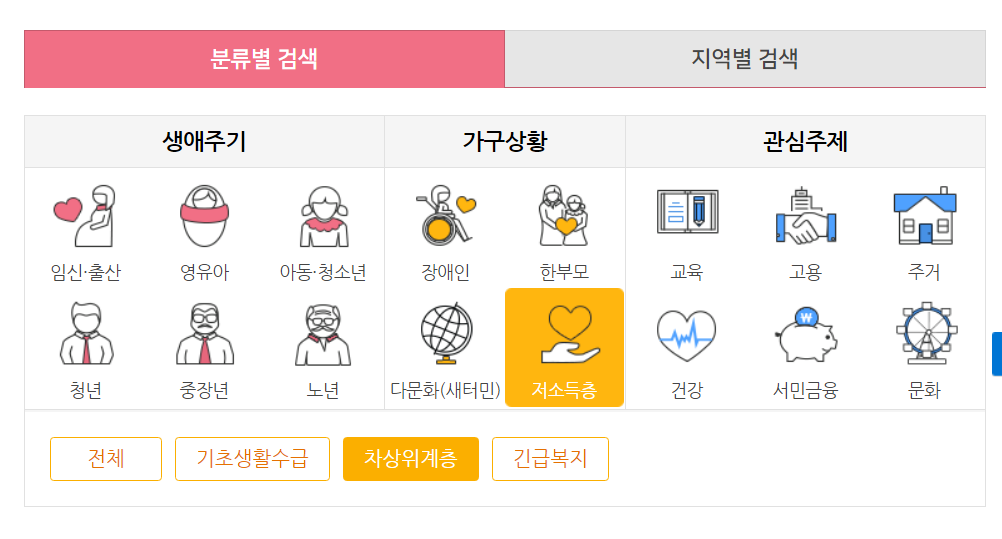 그 뒤에 저소득층 -> 차상위 계층을 눌러줍니다.