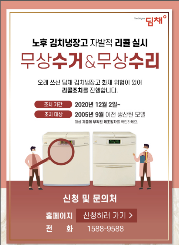 혹시라도 집에서 사용하는 김치 냉장고가 리콜 대상이라면 하루 빨리 리콜 받으셔서 안전하게 사용하시길 바라면서 글 마치겠습니다.