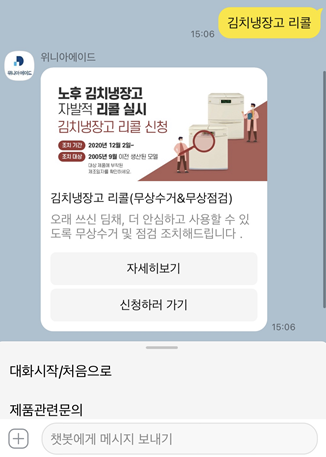 3. 위니아 딤채 카카오 채널을 통한 리콜 신청