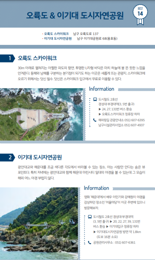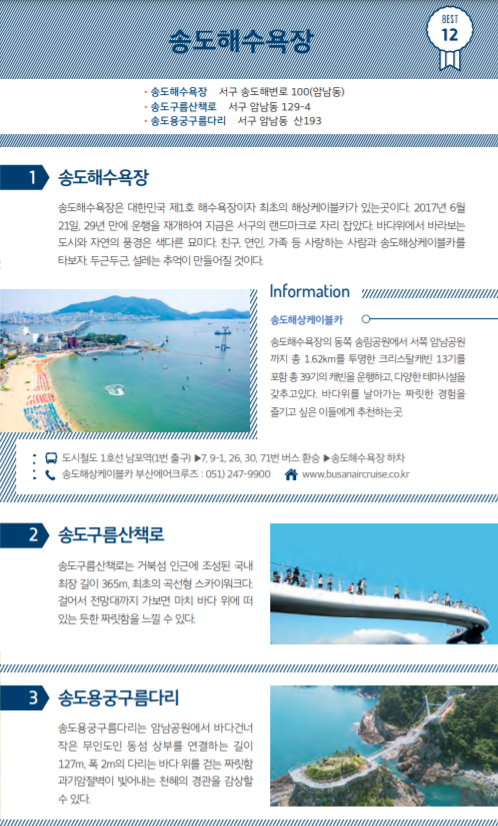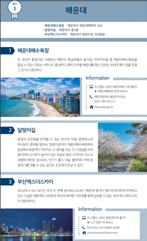 아무래도 부산시 공식 관광 홈페이지인 만큼 확실한 코스로 준비했을거라 생각합니다.