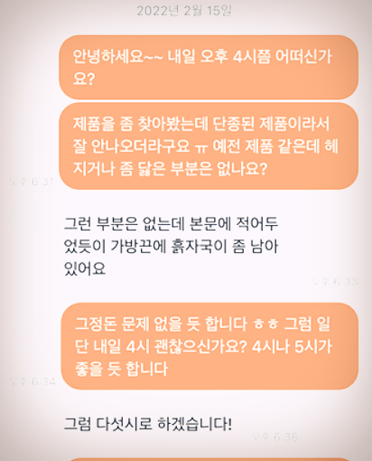 그래서 해당 판매자님과 약속을 잡고 만나기 전에 혹시나 해서 한번 더 문의를 해봅니다
