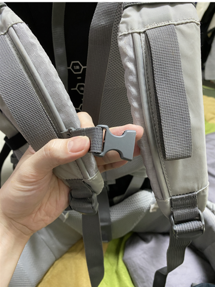 가방 앞가슴 벨트인 체스트 벨트가 한쪽이 없습니다