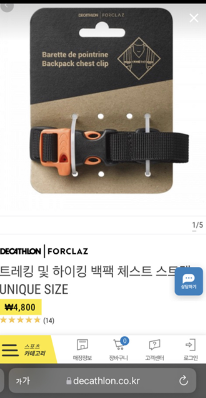 둘 다 당황하던 차에 혹시나 해서 국내 데카트론 매장에 전화해서 체스트 벨트만 따로 구매할 수 있는지 물어봤습니다.