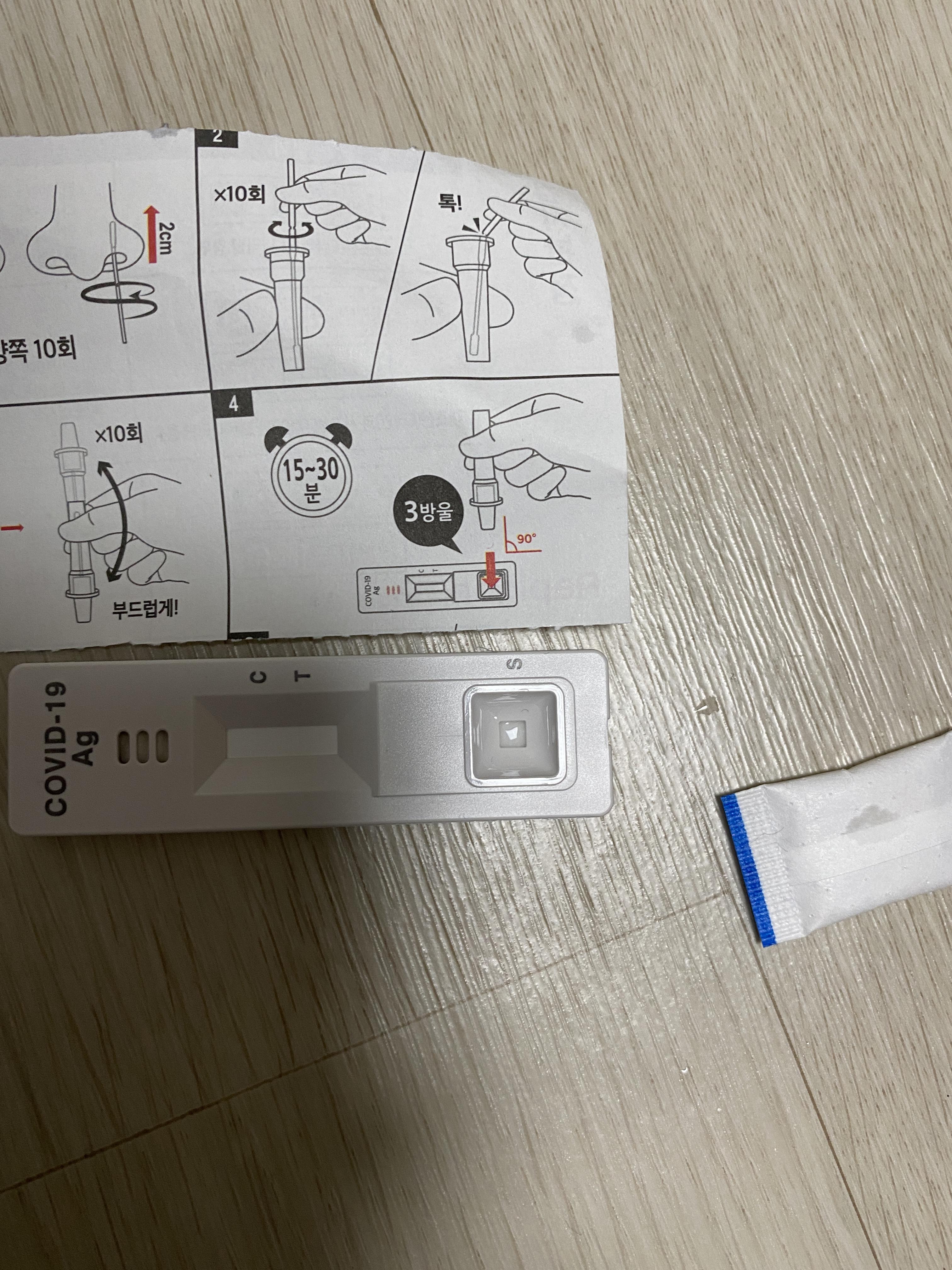 그리고 15분에서 30분 기다렸다가 검사 키트에 액을 넣어주면 검사가 된다고 합니다.