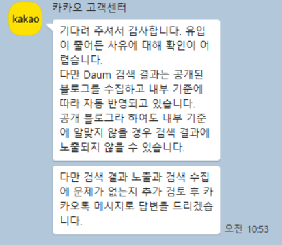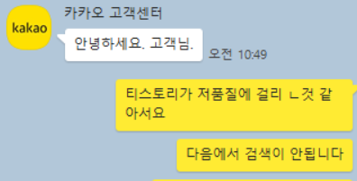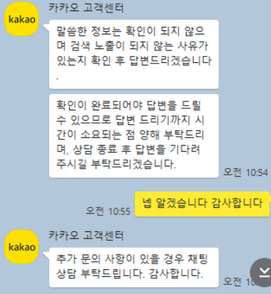그래서 다음 고객센터와 카카오 고객센터에 글을 올렸는데, 어떻게 답변이 올지 상당히 궁금합니다.
