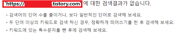 2. 다음 검색창에 내 티스토리 주소를 검색하면 검색이 되는지, 안된다면 저품질에 걸린게 확실하다고 합니다.