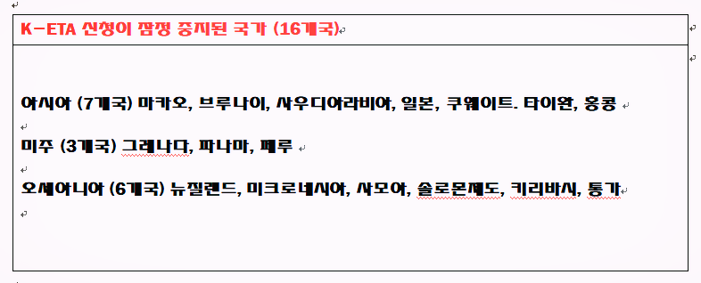 단 위에 속하는 국가 국민인데 K-ETA를 받지 않아도 입국 가능한 사람도 있는데요