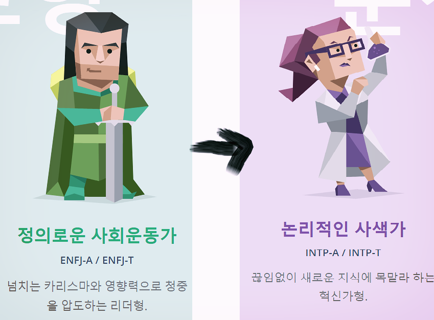 신기한게 기존 정의로운 사회운동가 유형은 20대의 저를 보는 듯 하나, 30대가 되어버린 저는 현재는 논리적인 사색가 유형이 잘 맞더라구요