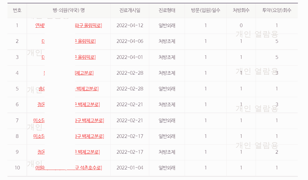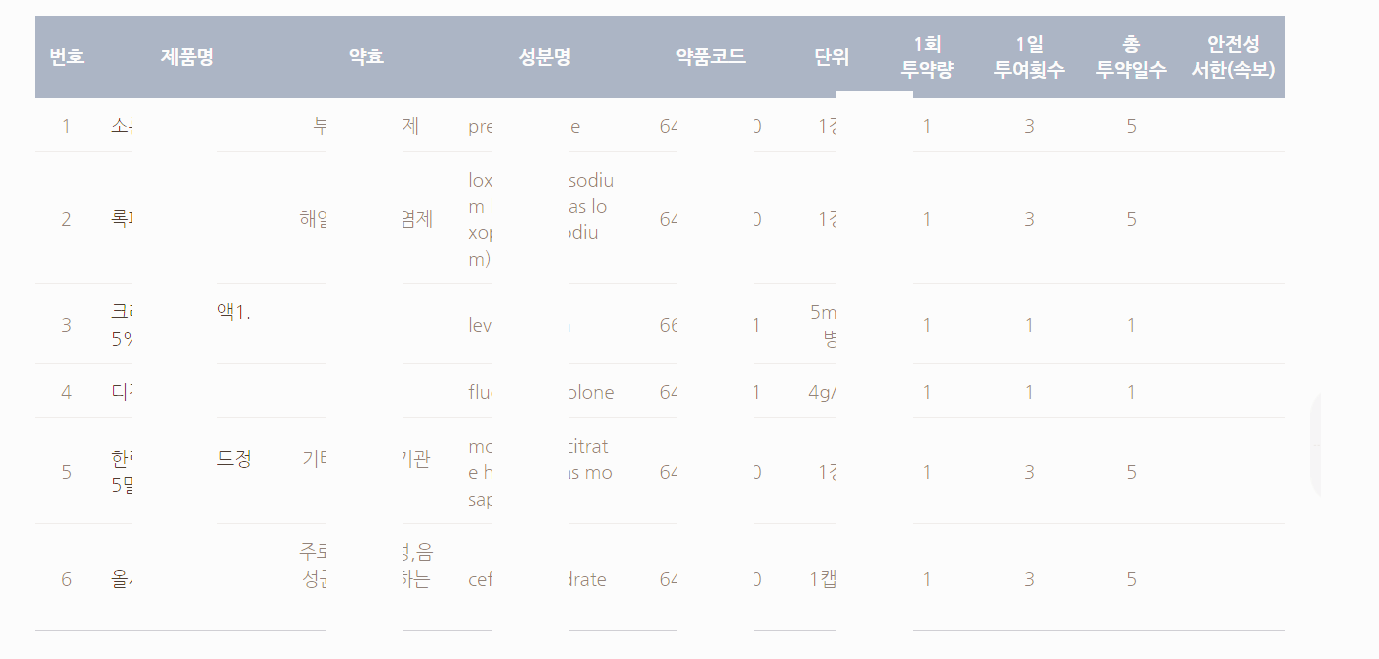 2번 방법이 훨씬 더 쉽게 들어갈 수 있지만 아쉽게도 전체적인 처방전 내역이 검색이 안되는 것 같았습니다.