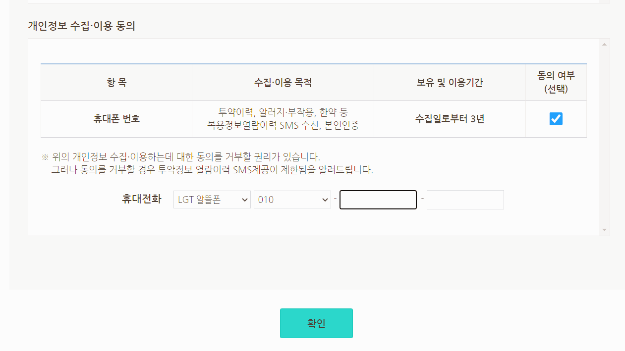 간단한 본인 인증을 하고 나면 (카톡으로도 간단하게 가능)