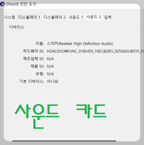 그리고 추가로 사운드 카드도 확인이 가능합니다.