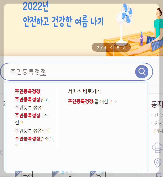 (2) 검색어 입력창에서 주민등록정정 검색
