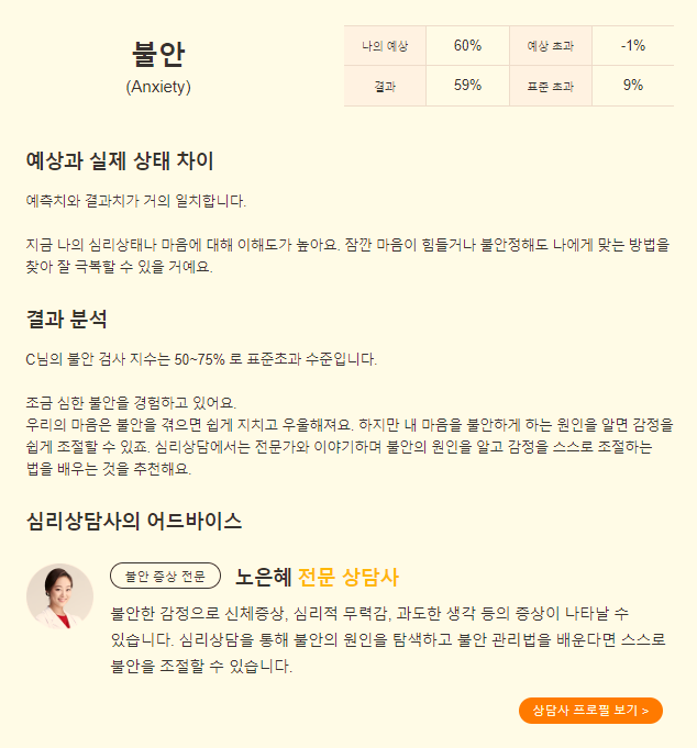 심리 상담사의 어드바이스가 나타나는데, 사실 조언을 보고, 스스로 관리를 하는 것 만으로도 충분할 것 같다는 생각을 합니다
