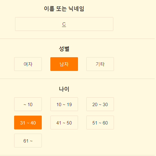 바로 나이, 성별을 체크하는 곳인데, 해당 나이에 따른, 성별에 따른 해석이 조금씩 달라지기 때문입니다