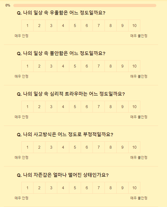 아래와 같이 숫자로 다양하게 선택이 가능해서 상당히 정확도 있는 검사라는 느낌을 받았는데요