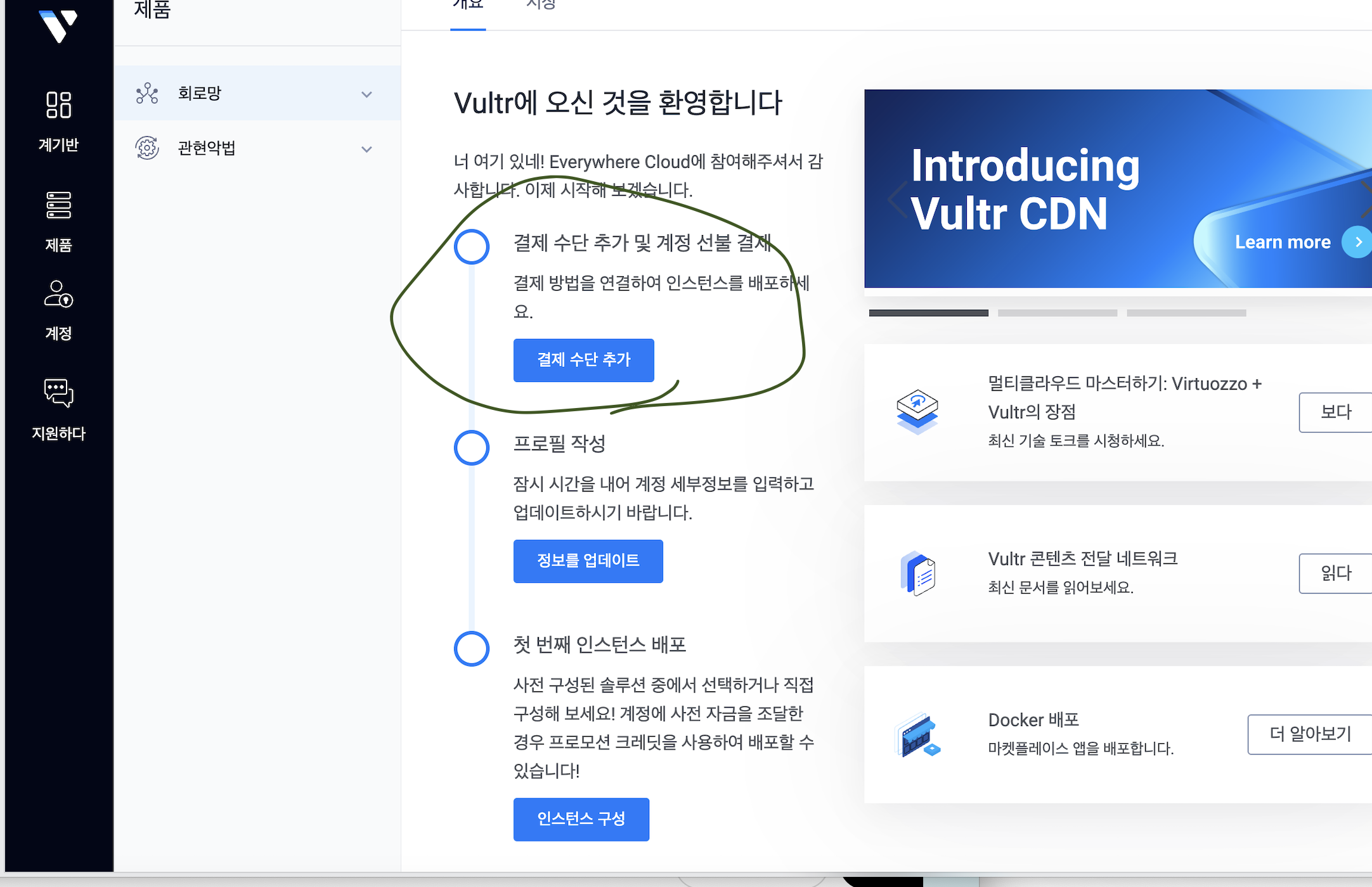 구글에 VULTR를 입력하면 바로 들어가지게 됩니다