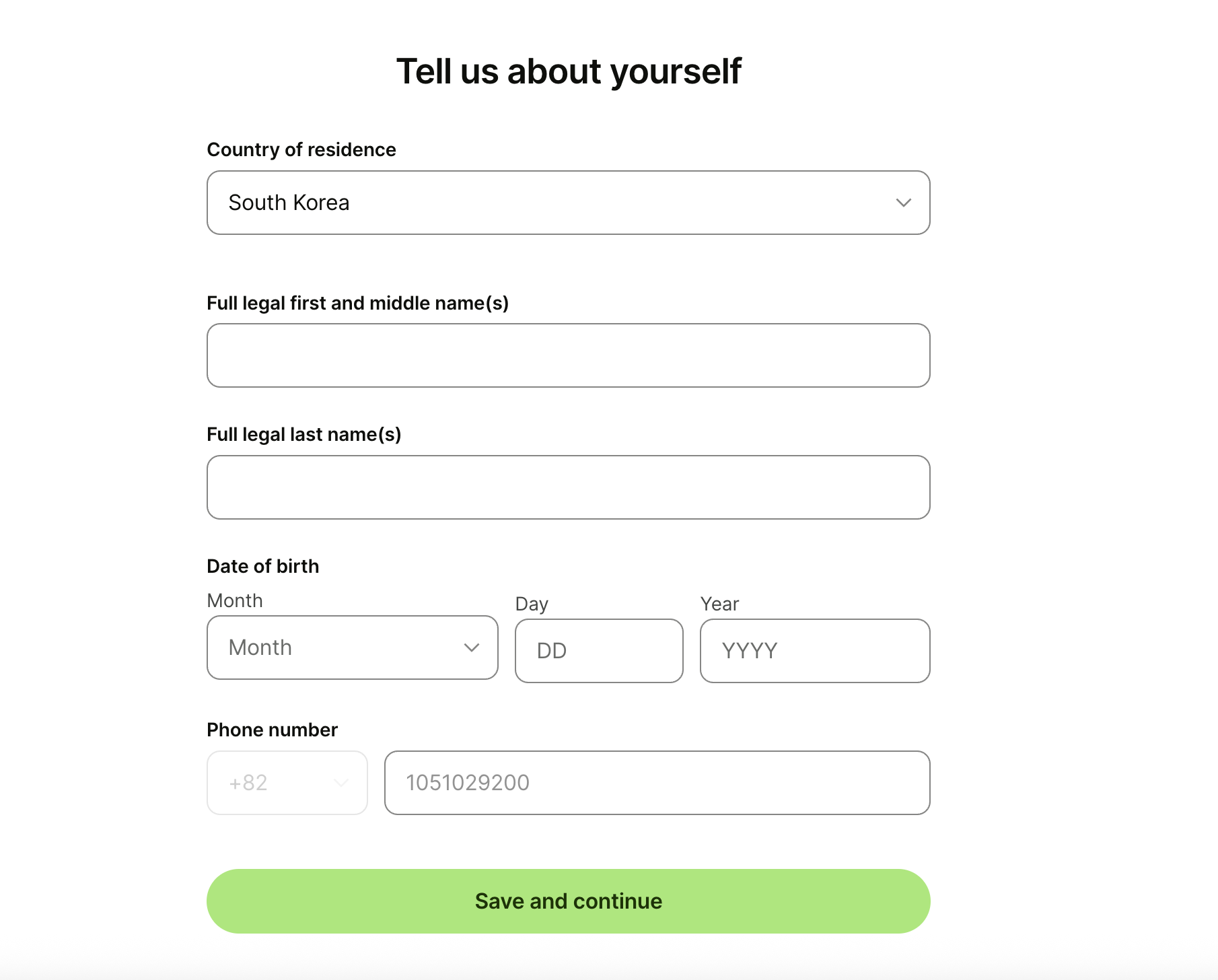 여기서 Full legal last name - 요건 성입니다