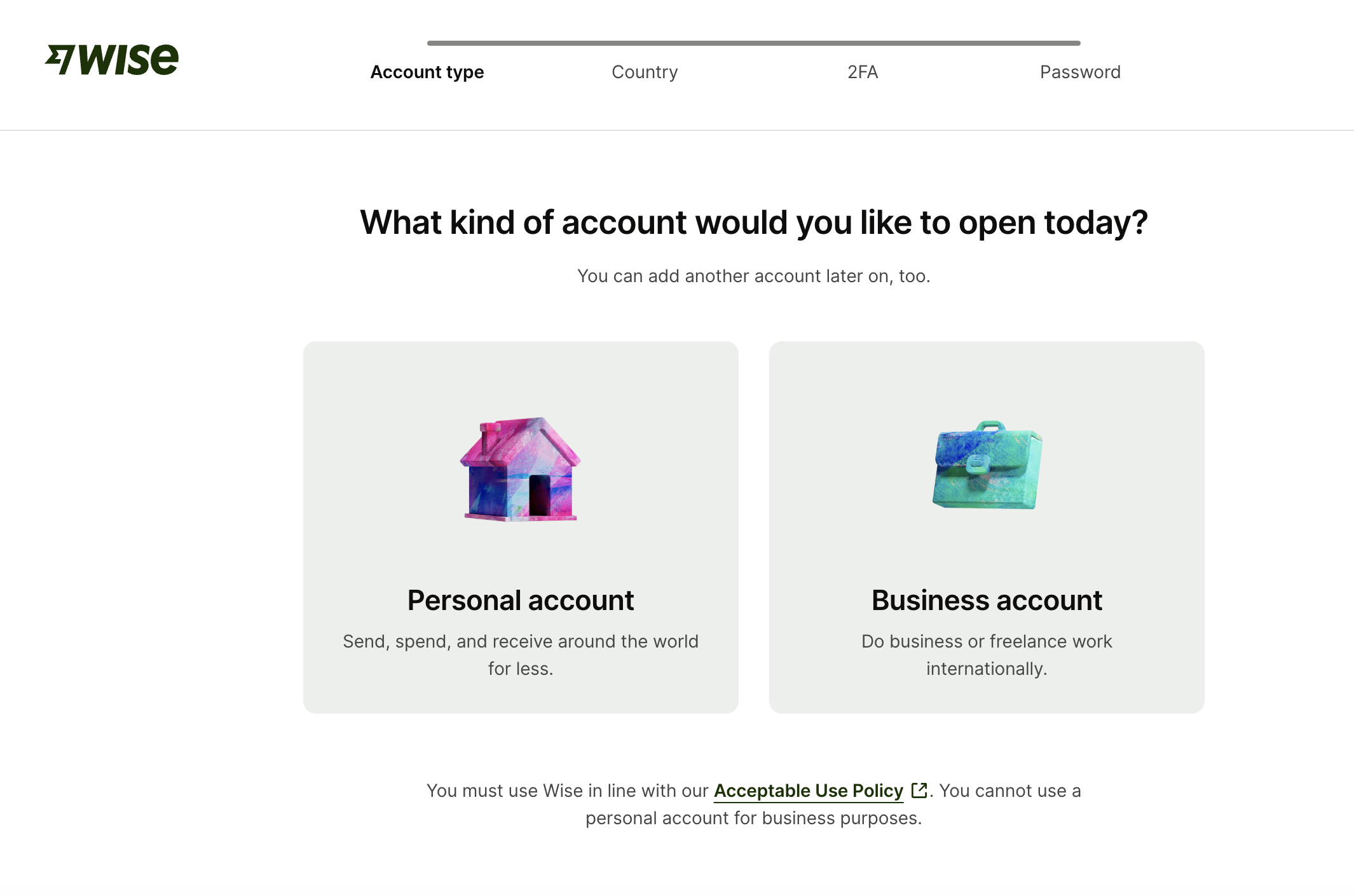 메일 주소를 넣고 나면 선택을 할 수 있는데 일단 전 개인 고객이기 때문에 Personal account로 눌러줍니다.