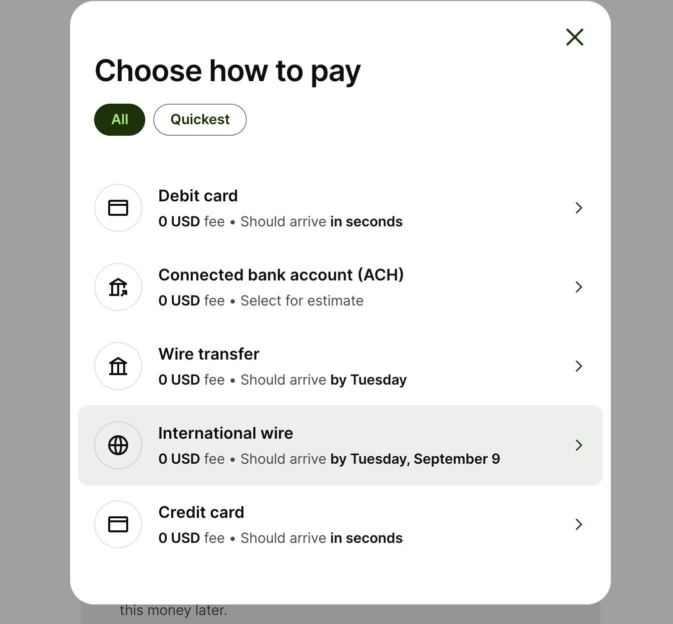 요기 Debit card를 선택해주면 되는데, 인터내셔널 와이어로 선택해줘야 한다고 합니다.