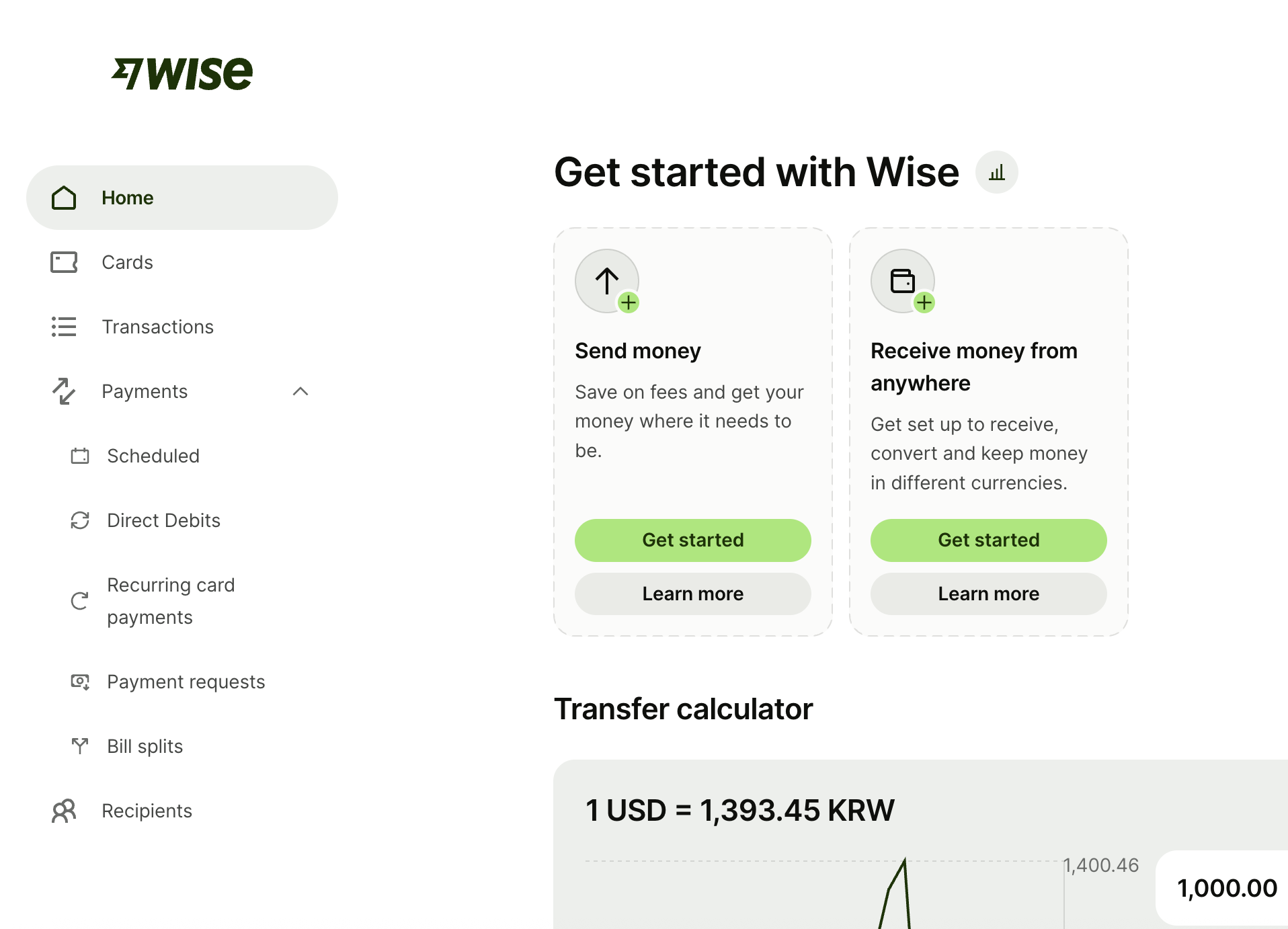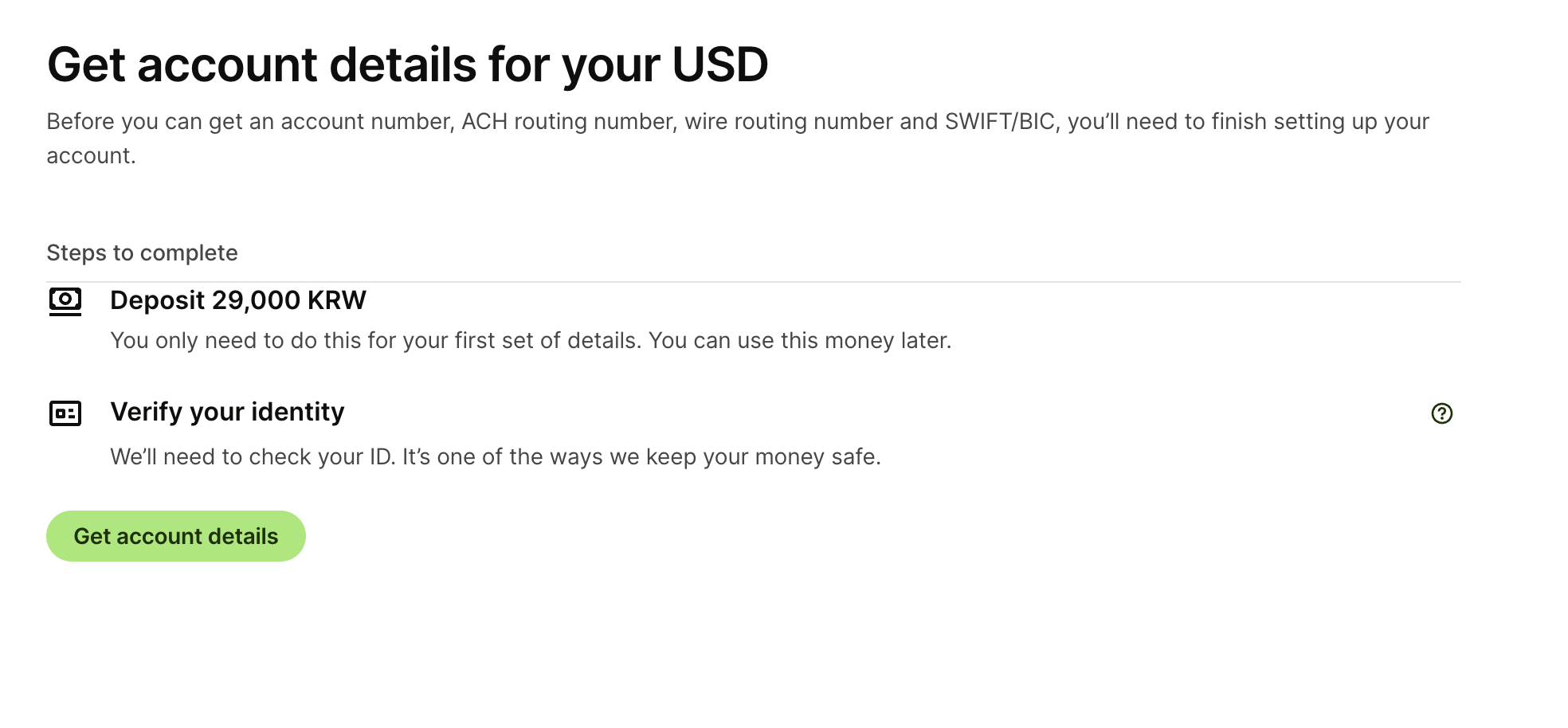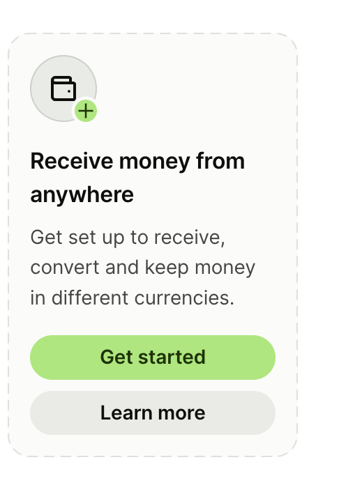 일단 Receive money from anywhere 이걸로 Get started를 선택해줍니다.