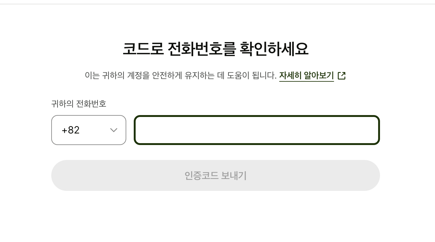 자기가 가지고 있는 핸드폰 번호를 넣어주면 대략 10초만에 sms로 인증 번호가 옵니다
